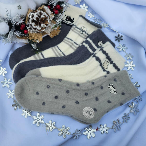 Női cicás pihe-puha gyapjú zokni szett – 5 pár