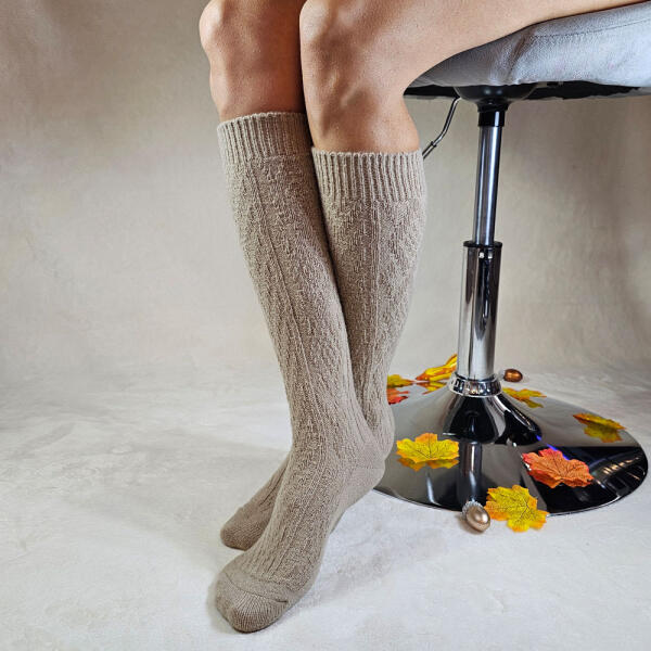 Aura Via Női gyapjú térdzokni - anyagában mintás Drapp, 38-41 100235