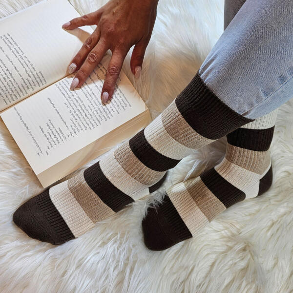 Női gyapjú zokni csíkos szett – 5 pár