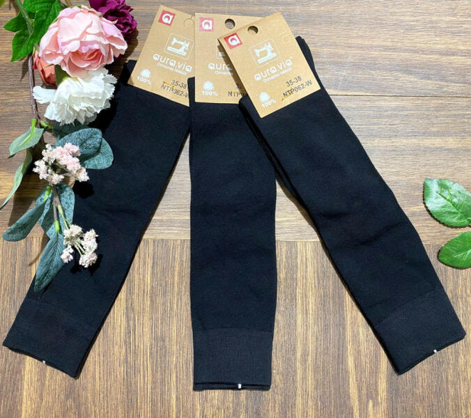 Aura Via Női Fekete Térdzokni – Pamut, Mintamentes