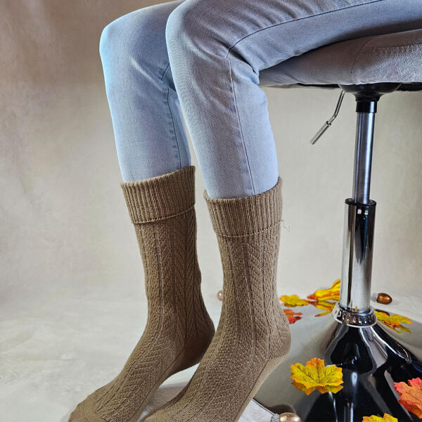 Aura Via Női visszahajtós gyapjú zokni - anyagában mintás Mogyoró, 38-41 100251
