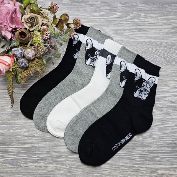 Női zokni francia buldog mintás 5 pár/cs NP5699