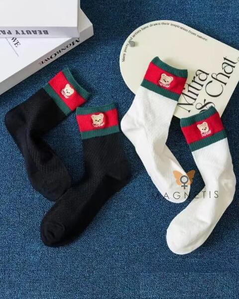 Elegáns női zokni- puha kötött anyag dombornyomott mintával- mackó applikációval díszítveÖsszetétel: 80% pamut, 15% poliészter, 5% elasztán