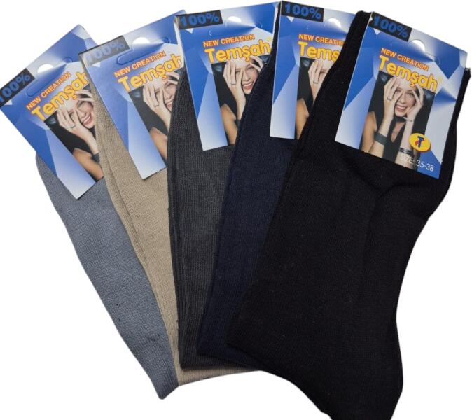 Ha kényelmes pamut zoknit keresel, akkor megtaláltad. Több színből álló  normálszárú zokni, ideális viselet, közkedvelt a Nők körében. A csomag 5 színű zoknit tartalmaz. Termékeink színe eltérhet a képen láthatótól a valóságban. Pamut, puha, színes-ilyen egy jó minőségű zokni. Válaszd ki a kendvenceidet a Női zokni kollekciónkból. Kényelmes viselet a hét minden napjára, gyors szállítással magyar webshopból.