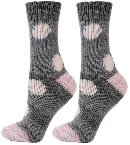 Női téli zokni - puha kötött anyag gyapjúkeverékkel - pontozott és csíkos minta - párba csomagolva - szatén masnival átkötve - ideális ajándéknak Összetétel a mintától függ: pontozott 63% poliészter, 24% gyapjú, 11% akril, 1% poliamid, 1% elasztán; csíkos: 57% poliészter, 33% gyapjú, 8% akril, 1% poliamid, 1% elasztán