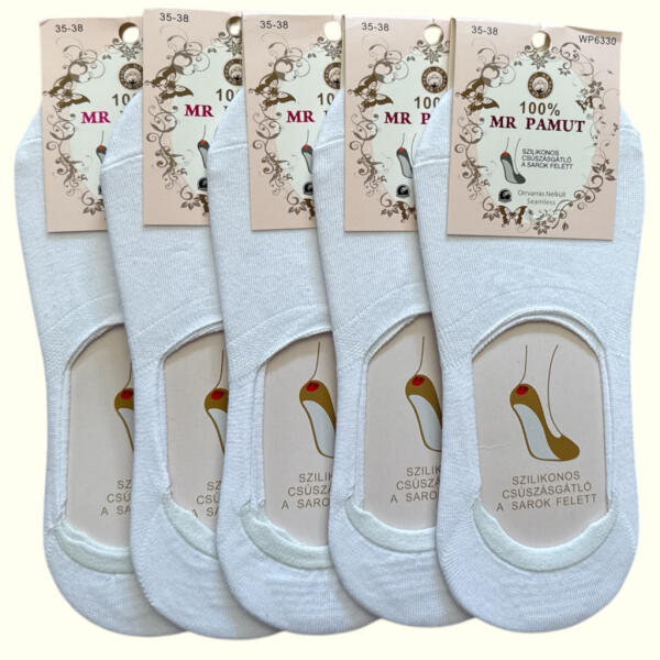 MR PAMUT női fehér titokzokni (5 pár, 100% pamut, szilikonos sarokkal, orrvarrás nélküli) (MR6330)