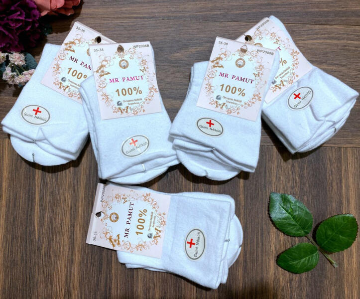 Mr Pamut Női Gumi Nélküli Zokni – 5 Pár, Fehér, 100% Pamut