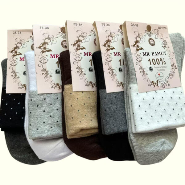 Ez az MR PAMUT női pamutzokni szett 5 pár különböző színű zoknit tartalmaz, amelyek felső részén vidám pöttyös minta található, így játékos és divatos megjelenést biztosítanak. A zoknik magas pamuttartalmú anyagból készültek, bőrbarátok és jól szellőznek, ideálisak a mindennapi használatra.