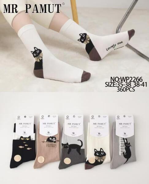 MrPamut Női pamut macska mintas zokni 5pár (WP2266)