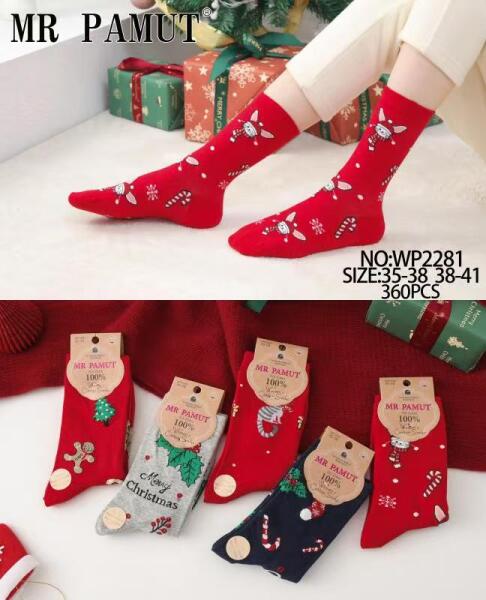 Női Pamut Normál szárú Zokni 5 Pár - Karácsonyi Mintás (WP2281)