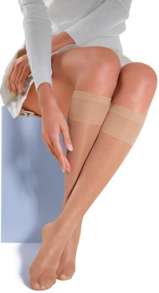 Női térdzokni 20 den vastagságban, nyomásmentes felülettel. A csomag 2 darabot tartalmaz.