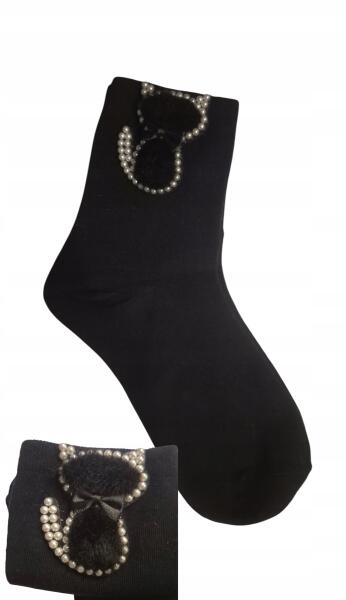 Pamut Zokni Fekete Női Zokni Cirkóniákkal Glamor 38-42 Macska