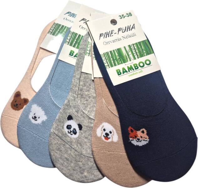 Pihe-Puha Női, bambusz zokni, orrvarrás nélküli, balerina, állatos, 5 pár/csomag