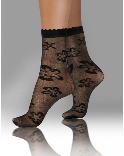 Vékony női zoknik - virágmintával díszítve - nyomásmentes szegély fodros díszítéssel - párban csomagolva Összetétel: 91% poliamid, 9% elasztán