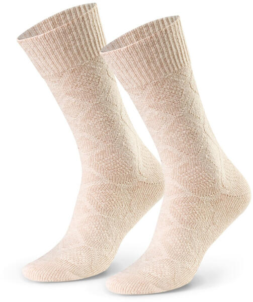 Meleg női zokni Kiváló minőségű gyapjú Finom geometrikus mintával díszítve Melegséget és kényelmet garantálnak használat közben Finom bordázat Összetétel: 72% gyapjú, 26% poliamid, 2% elasztán