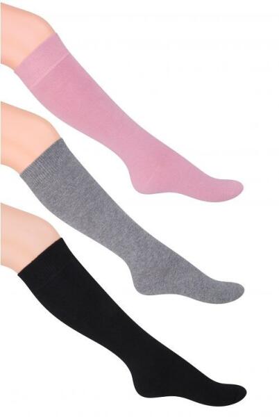 Sima női pamut térdzokni. Anyaga: 65-70% pamut, 26-27% poliamid, 4% polipropilén, 3-5% elasztán