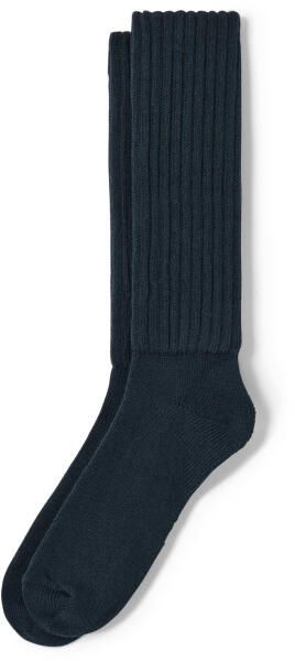 1 pár női zokni, bordázott, sötétkék Szín: Tengerészkék Anyag: 50% poliészter, 28% viszkóz, 20% poliamid, 2% elasztán (Creora®) Hosszú szárú, kétrétegű zokni, redőzhetőMegerősített orr és sarokKülönösen lapos orrvarrásMárkás elasztánnal: formatartó, tökéletesen áll, rendkívül kényelmes viselet