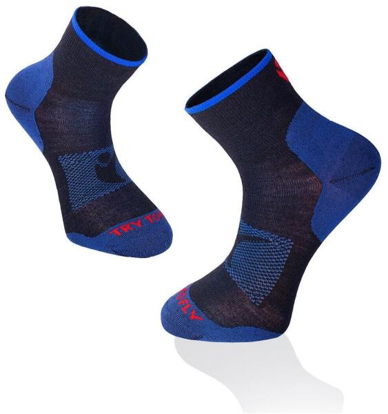 Try To Fly Rövid sötétkék merinó gyapjú LIGHT HIKING ANKLE SOCKS túrazokni, 35-38 EU, Többszínű (TF21-002-1)