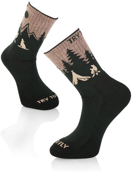 Try To Fly Sötétzöld merinó gyapjú HIKING SOCKS Farkas túrazokni, 39-42 EU, Többszínű (TF32-306-2)